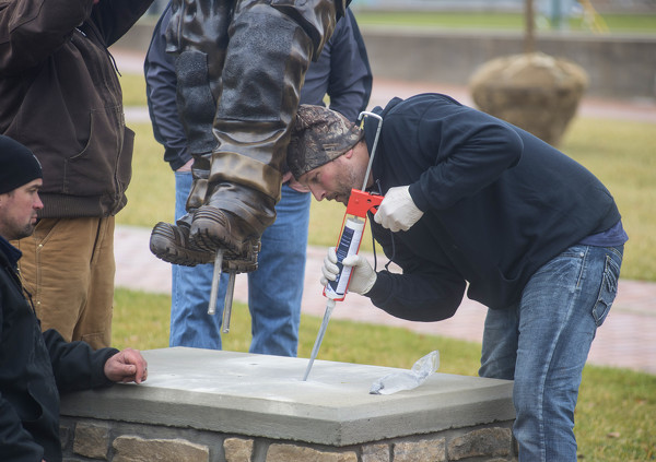 Installing New Bremen's firefighter statue