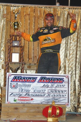 ROSSBURG - Donny Schatz survived a mid-race battle with Dale Blaney and then held off late challenges by both Blaney and Sam Hafertepe Jr. to capture the 26th annual Kings Royal Saturday night at Eldora Speedway.
