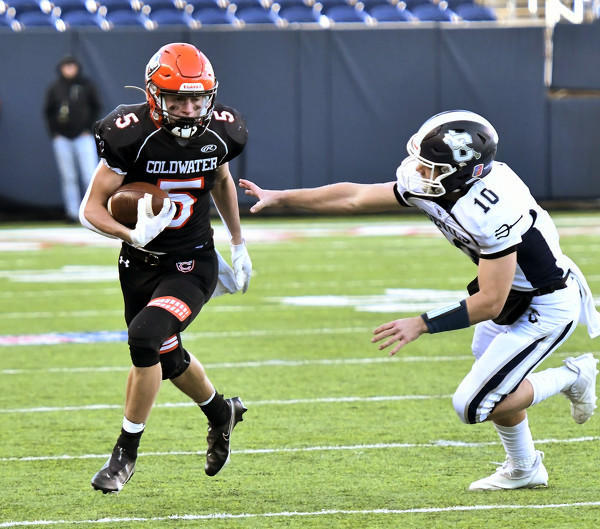 Two second-quarter turnovers set up touchdowns for Carey, which leaned on 265-pound running back Jordan Vallejo against an overmatched Cavaliers defense to send Coldwater to a 26-14 defeat in the Division VI state football championship at Tom Benson Hall of Fame Stadium in Canton on Saturday. [More]