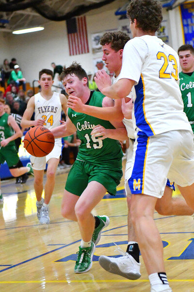 The Flyers' frontcourt stars combined for 29 points, the defense hassled Celina all night, and they kept pulling away for a 49-32 win in a boys basketball game at the Hangar on Saturday. [More]