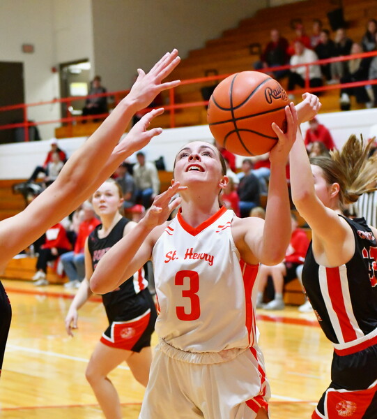 ST. HENRY - Communication is key in basketball, and St. Henry basketball fans will have a lot to talk about after the team started fast and kept going in a 69-35 non-conference win over Fort Loramie in a battle of Redskins.