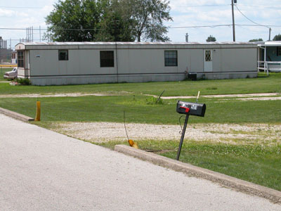 | Today, only one of the four mobile homes that previously lined North Street remains. Bare cement and utility meters are the only remnants left behind by the homeowners who packed up and fled after the flood. Purchase this as a quality photograph | ||||||||