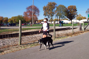 Paula Casad, Celina, right photo, walks her dog, Maggie, on the Celina-Coldwater bike path Monday afternoon to take in the beautiful weather.