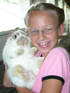 Marisa Spoltman, 9, of Maria Stein cuddles with her rabbit "Rex," a few hours before rabbit showmanship judging.