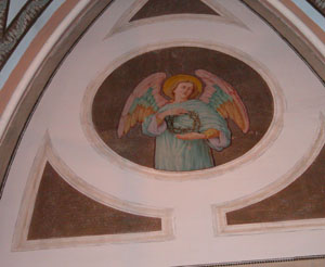 Pictured is one of four angel murals inside St. Sebastian Catholic Church that will be touched up by a professional artist in a few weeks.