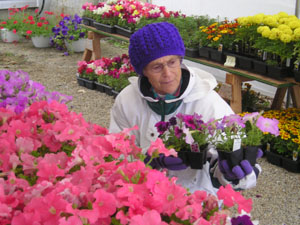 | | St. Marys Garden Club member Jean Campbell shifts some plants around Friday for the group's annual sale. The club, formerly the Men's Garden Club, has been selling plants every spring for the past 50 years of its 75-year history. The group also plants various community flower beds around town as well as the barrels of flowers at the county fair. | |