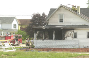 | | Coldwater firefighters responded to the 300 block of South Market Street this afternoon to find a house with three apartments in flames. One woman was transported to Mercer County Community Hospital in Coldwater, where she was treated then released for smoke inhalation. The upstairs apartment is considered a complete loss. The cause of the blaze remains under investigation, said Coldwater Fire Chief Paul Streacker on Friday evening. | |