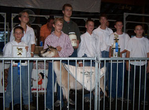 | | At left, the gallon of dairy goat milk went for $300 plus shares of $25. The total sale was $1,350. The sale moneys are split 20 percent to Keith Wendel of T & C Friends 4-H Club owner of the goat; 20 percent to the auction committee and 60 percent back to the goat showmen. | |
