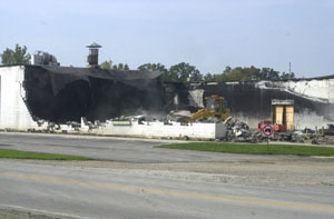 Demolition work progresses Thursday in Celina on the QualiTech Metal Finishers building at 441 Grand Lake Road that was damaged by fire in early January. Operations Manager Mike VanBuskirk this morning said the demolition should be complete some time next week and construction of a new steel building should start this month. The fire occurred while a new building was being built. Production lines that had been housed in the fire-damaged building were moved to the new building, Buskirk said. The accidental fire occurred when a heating element was left on and ignited a plastic container, Celina Fire Chief Doug Kuhn said this morning.