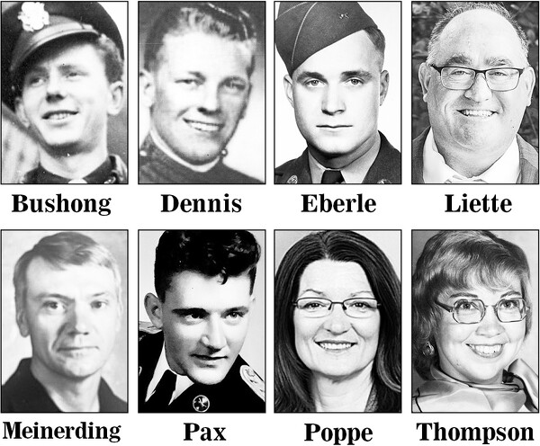 Inducted under the category of academic/professional achievement is Barbara Poppe; athletic achievement, Ted Liette; service to St. Marys City Schools, M. Sue Thompson and Allen D. Meinerding; and military service to country, Col. Richard B. Bushong, SSgt. Franklin A. Eberle, 1st Lt. Gene A. Dennis and SP4 Lavern E. Pax.