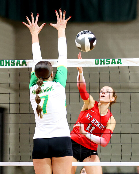 Bollenbacher had nine kills for St. Henry. Wendel, one of five seniors along with Olivia Gast, Morgan Baumer, Lexi Buschur and Karlee Buschur, had eight kills and 10 digs. Morgan Baumer had 17 digs with Addy Homan recording 23 assists.