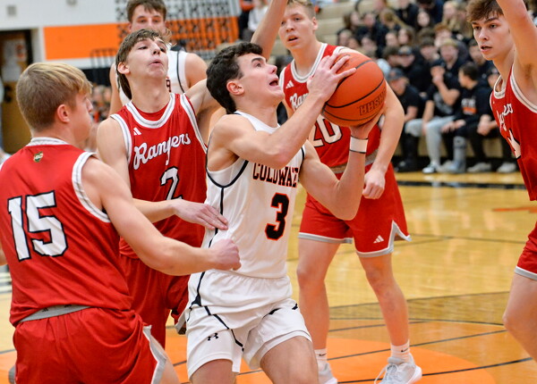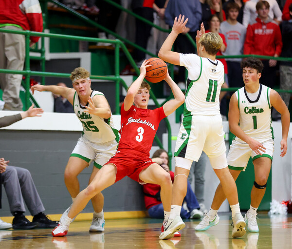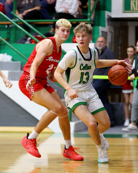 Celina's Braylon Parker (13) tries to get around Wapakoneta's Caleb Adams (21).