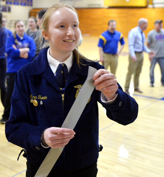 Students donated a dollar each to duct tape freshman English teacher Lacy Howell to a wall as the FFA raised more than a hundred dollars for charity Friday at Marion Local High School.