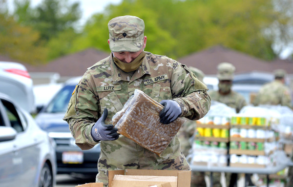 The Ohio National Guard out of Lima were out helping the West Ohio Food Bank distribute food Tuesday afternoon in the parking lot of the Galleria in Celina.