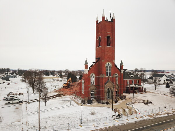 Following winds that toppled the western sanctuary wall, the remainder of St. John the Baptist Catholic Church in Maria Stein will be razed.