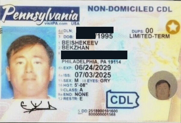 DHS and ICE called attention to Bekzhan Beishekeev's Pennsylvania CDL.